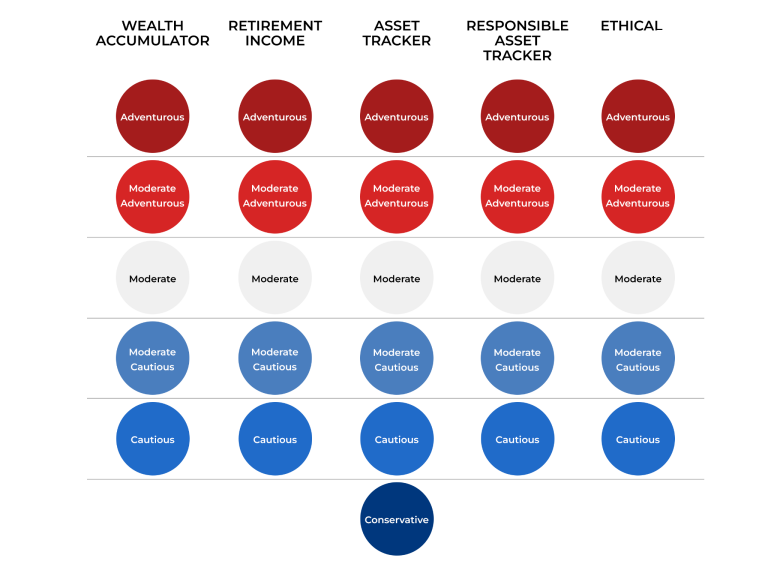 Our Wealth Accumulator and Retirement Income Portfolio Services provide a range of carefully and professionally managed investment portfolios spanning five risk levels with two core objectives, investment growth and investment income.